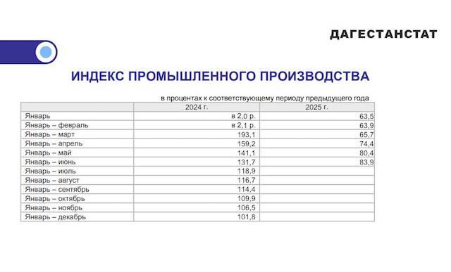 Индекс промышленности Дагестана ниже прошлогоднего на 13%