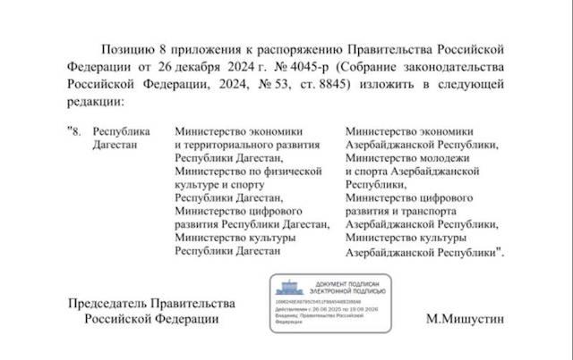 Правительство России включило Минкульт Дагестана в систему отношений с Азербайджаном