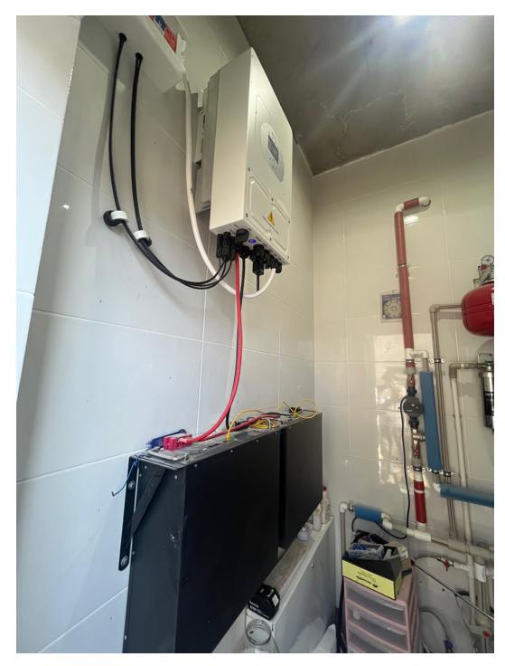— Я сторонник полной автономности. У меня резервуар для сбора дождевой воды, отопление на дизельном котле и солнечные батареи, — с этими словами Магомед открыл нам подсобку, демонстрируя оборудование. Слева — водонагревательный дизельный котел, а справа на стене — гибридный инвертор Deye 5 кВт и аккумулятор на 10 кВт•ч. На двухскатной крыше дома с небольшим углом наклона 9 солнечных панелей, каждая из которых мощностью 460 ватт.