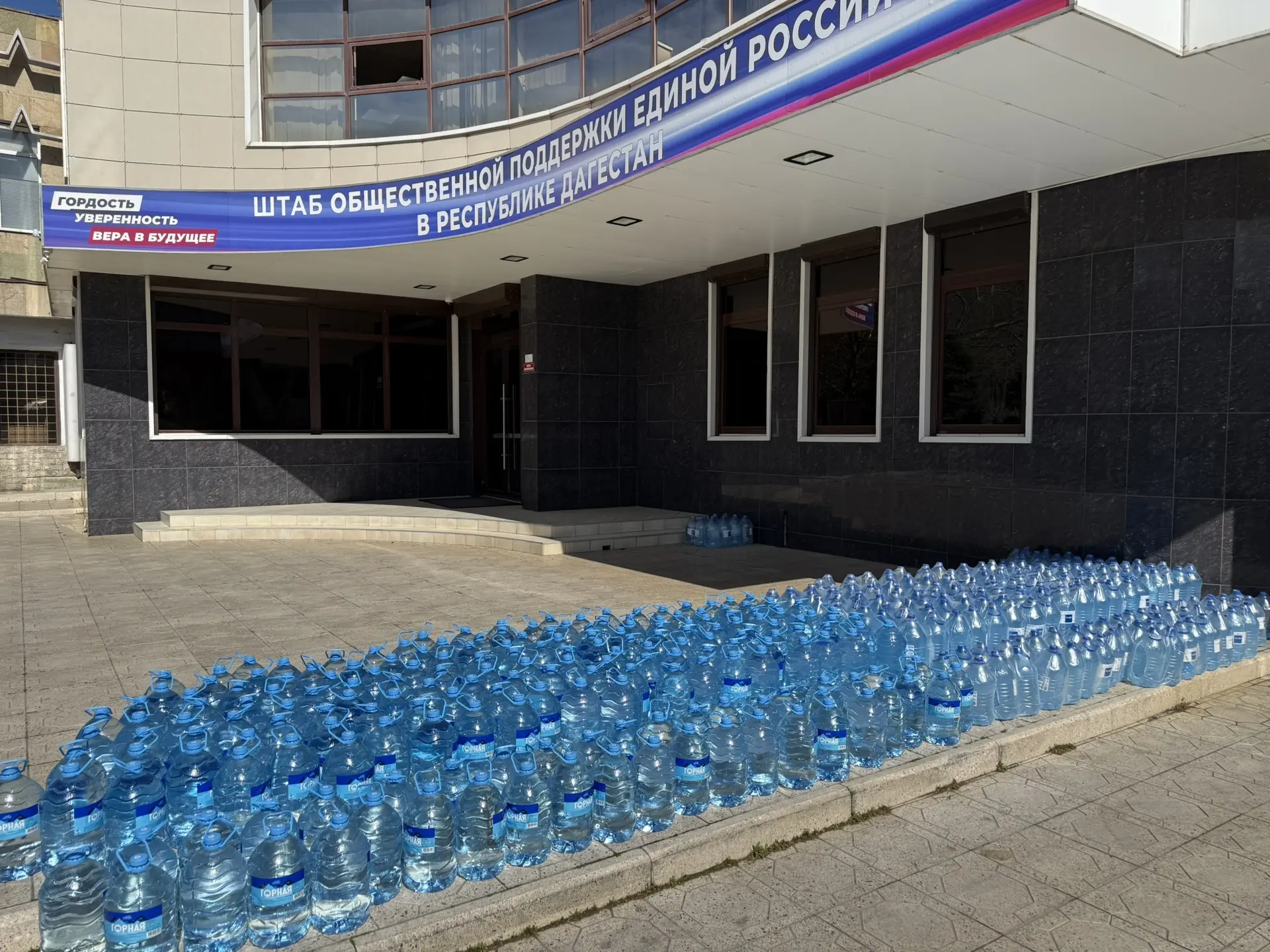 Так же в эти дни Штаб организовал обеспечение садиков бутилированной водой. По садикам Махачкалы сегодня было развезено 2000 литров чистой воды.