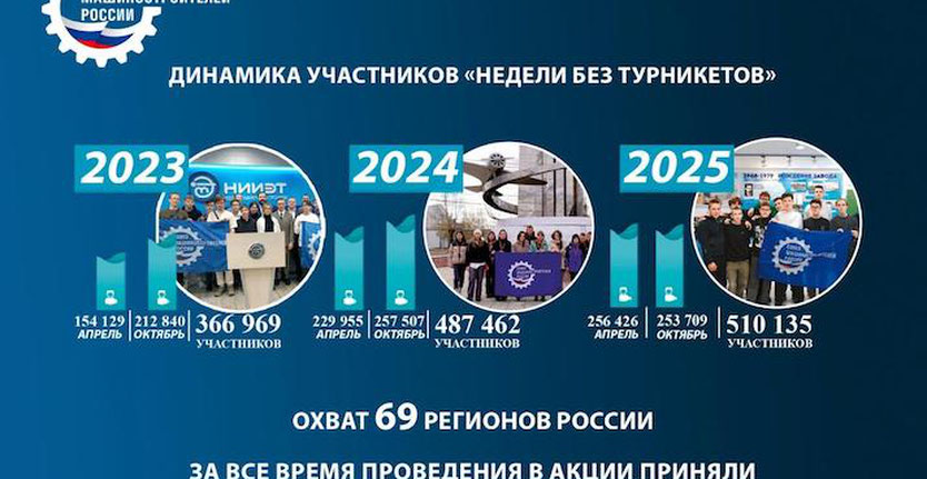 05.12.2025 09:44В 2025 году Всероссийская акция «Неделя без турникетов», реализуемая Союзом машиностроителей России при поддержке предприятий и образовательных организаций, отметила своё десятилетие. За это время проект стал одним из главных профориентационных инструментов страны, знакомящим школьников и студентов с современным производством и инженерными профессиями. Акция проводится дважды в год - в апреле и октябре, ее формат позволяет будущим инженерам увидеть реальные производственные процессы, познакомиться с технологиями и попробовать себя в роли специалистов разных направлений.