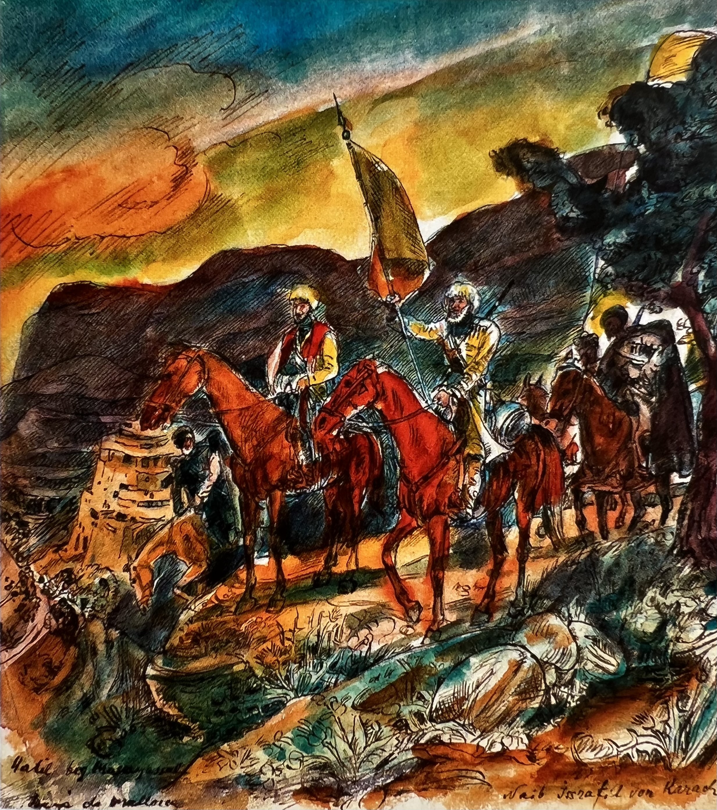 Что касается «триллера с чекистами в Азербайджане и Грузии». Он выдуман от начала до конца. Я его, кстати, подробно разбираю в одной из глав. Художник успел пожить «при советах» совсем недолго. Советская власть в Дагестане утвердилась в апреле 1920 года, а спустя девять месяцев, в январе 1921 года, он уже был командирован на учебу в Германию. Отъезд из страны Халил представил в воспоминаниях как бегство. Как и положено художнику, свой рассказ он расписал в красках и немного анекдотично, бравируя пренебрежением к тем смертельным опасностям, которые подстерегали его якобы на каждом шагу. Он писал его для определенного читателя — представителей круга кавказской эмиграции. Халил не бежал из советского Дагестана, а был командирован в Мюнхен для продолжения учебы как государственный стипендиат (тому есть подтверждения в официальных источниках), но об этом он предпочитал не упоминать.