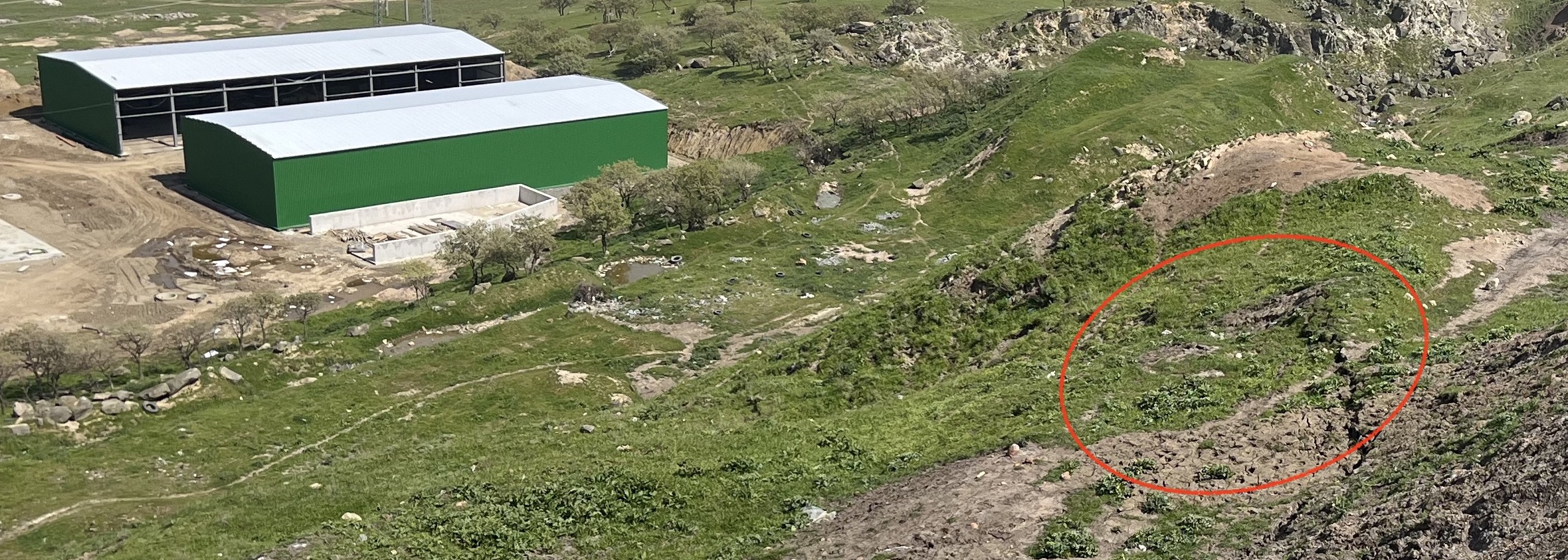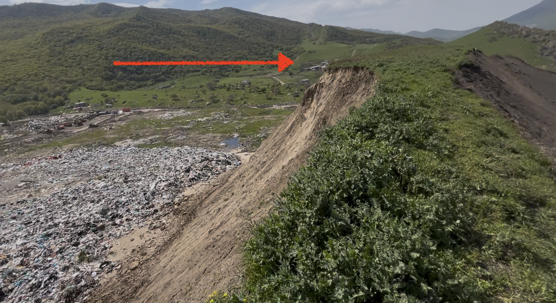 Обнаружено, что новый мусоросортировочный комплекс расположен у подножия горы, высотою около 20 метров, которая отделяет комплекс от мусорного полигона, который до сих пор используется для складирования мусора.