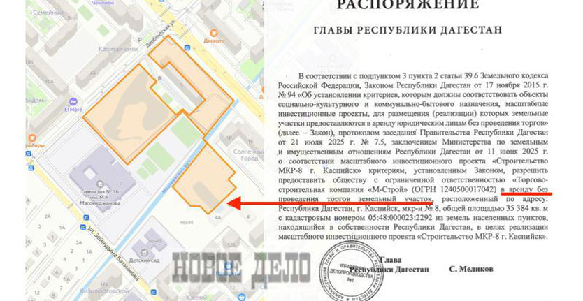 Глава Дагестана предоставил участок в Каспийске под многоквартирную застройку